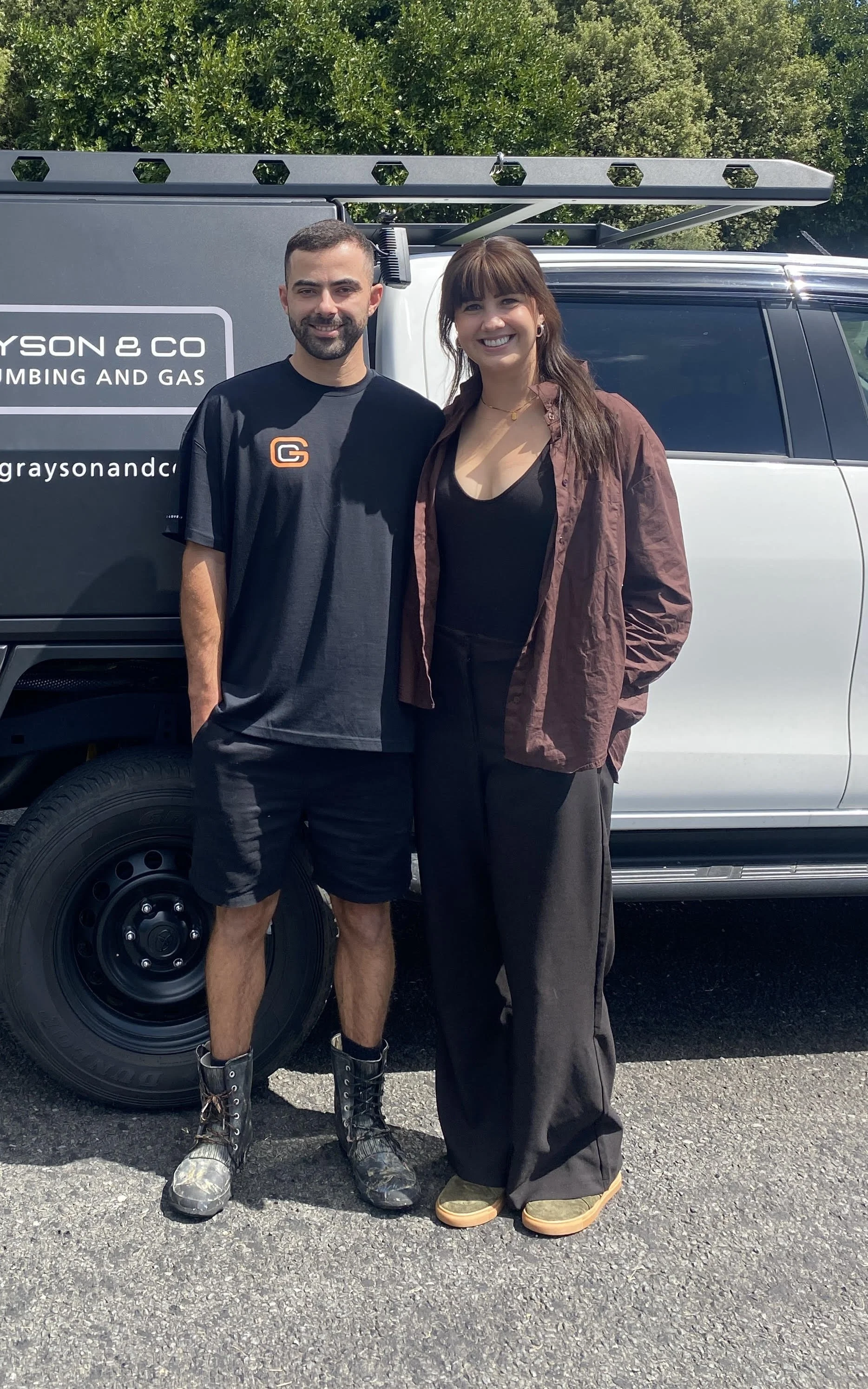 Josh is a certified plumber and gasfitter who also runs their other business, Grayson & Co - Plumbing and Gas. Equally comfortable in the kitchen as he is on the tools, he enjoys fishing, cooking at home, and unwinding with a glass of red wine alongside their cuddly cat, Ru.